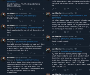 Sementara itu, Dahlia menerusi akaun Twitternya mengatakan dia dipaksa untuk melakukan perbuatan itu oleh bekas teman lelakinya.