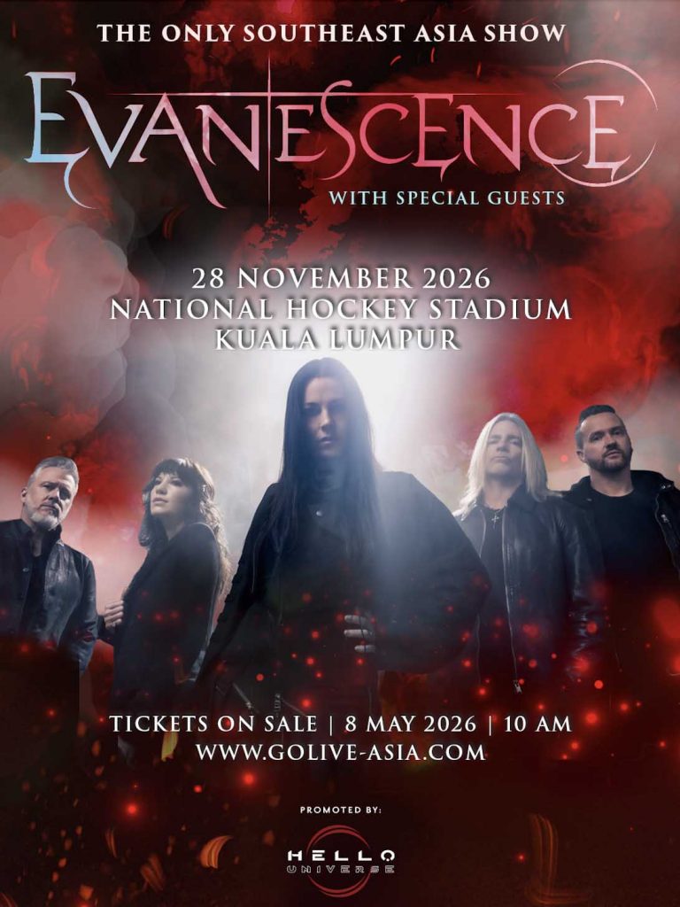 Fenomena rock antarabangsa Evanescence bakal membuat kemunculan semula yang dinanti-nantikan di Malaysia selepas 14 tahun, dengan Kuala Lumpur dipilih sebagai satu-satunya destinasi di Asia Tenggara bagi persembahan eksklusif ini, yang akan berlangsung di Stadium Hoki Nasional, Bukit Jalil pada 28 November 2026.